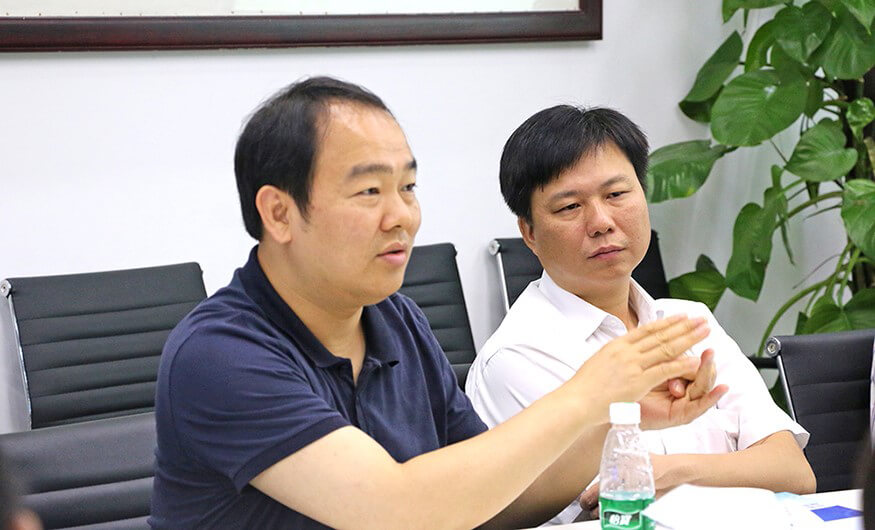 座谈会上,各位领导认真了解yabo鸭脖智能各方面的情况