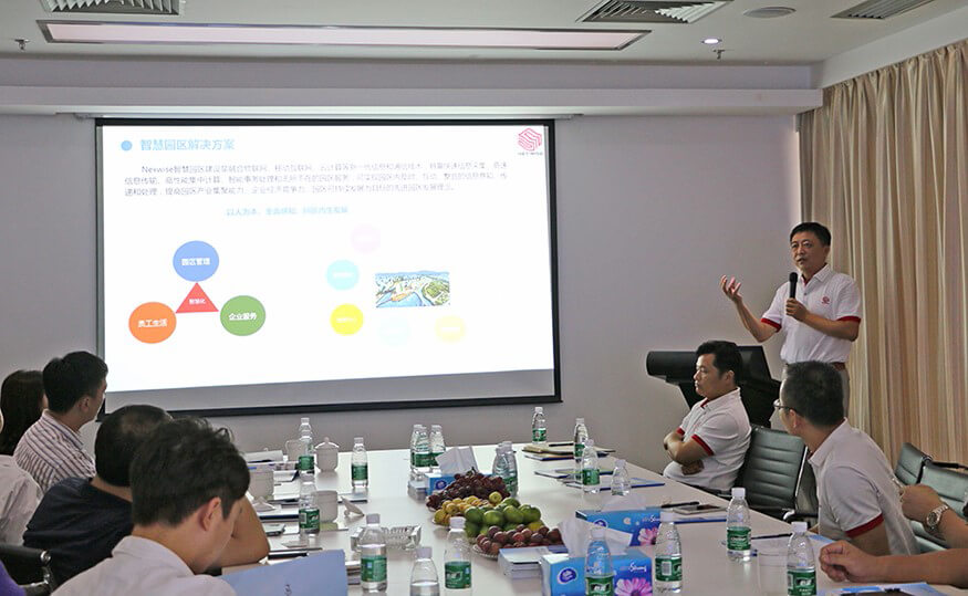 针对当前全国各地大力推进智慧城市建设这一浪潮,朱勇杰还向各位领导介绍了yabo鸭脖智能研发的智慧建设解决方案,着重阐述了其中的智慧城市解决方案,指出该方案以“互联网+”促进电子政务全面转型,利用创新2.0驱动智慧城市转型升级,发展以“互联网+”为核心要素的智慧产业,打造智慧高效的网络安全保障体系,建设统一的智慧城市信息资源体系。